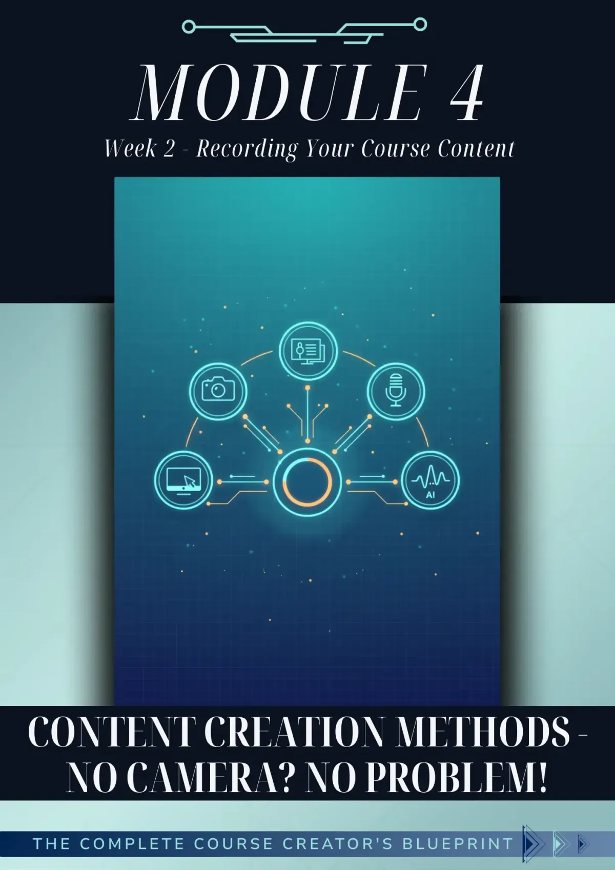 Following this system, most people have their course outlined in Week 1 (2-4 hours), content recorded in Weeks 2-3 (10-15 hours total using batch recording), and launched by Week 4.