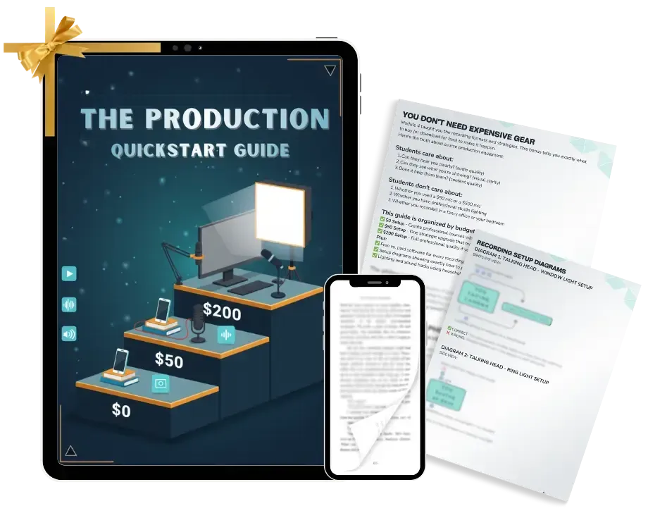 The absolute minimum you need to create professional-quality course content without spending thousands on cameras and microphones (and the ONE audio mistake that makes 80% of courses unwatchable)