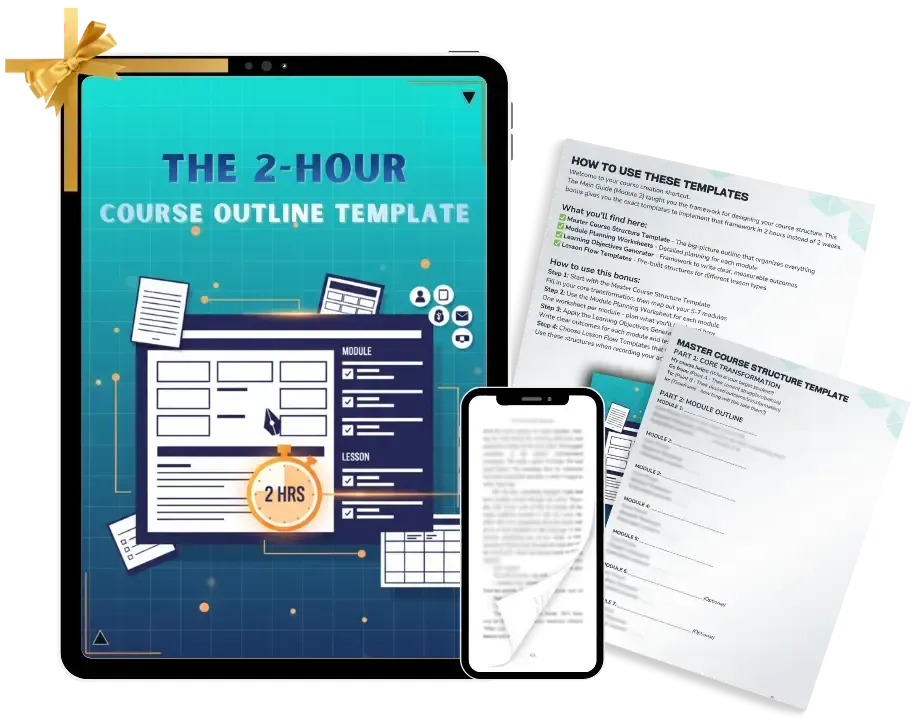 This is where your scattered knowledge becomes structured content - our proven frameworks help you create your entire course outline while preventing scope creep and overwhelm.