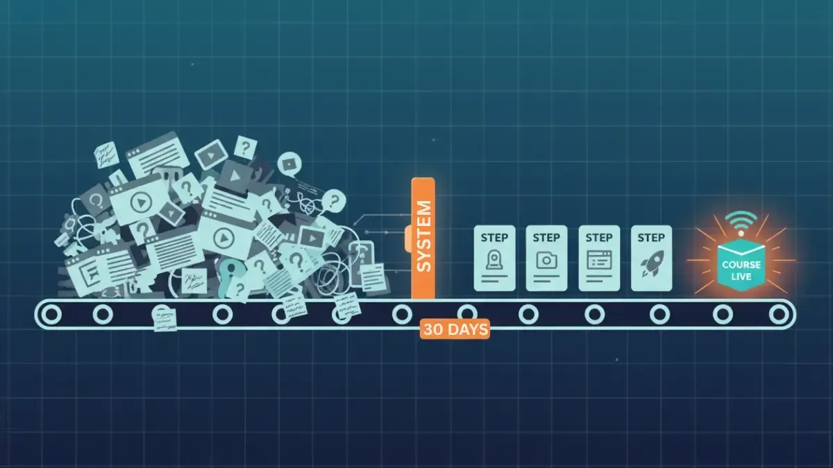Most aspiring course creators are unknowingly sabotaging themselves by consuming endless information about course creation instead of following a simple, proven system that actually gets them from idea to launch.